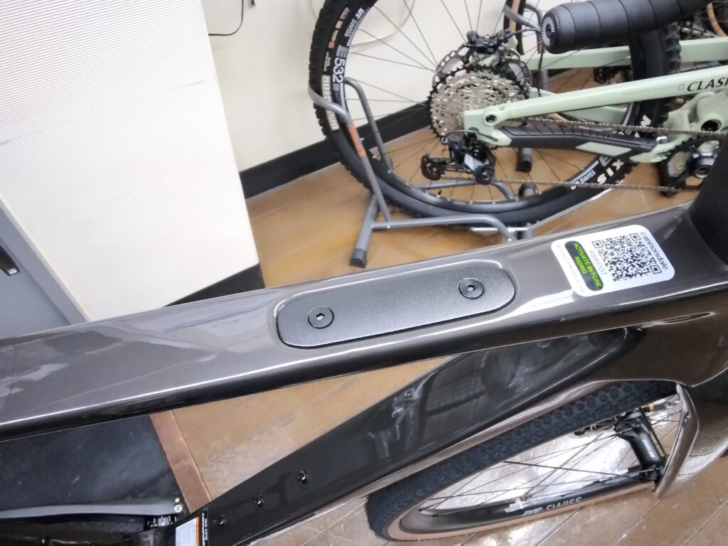 トップチューブのバックマウントにスタイリッシュなカバーを装着。必要な時に使用でき、不要な時は隠せます。