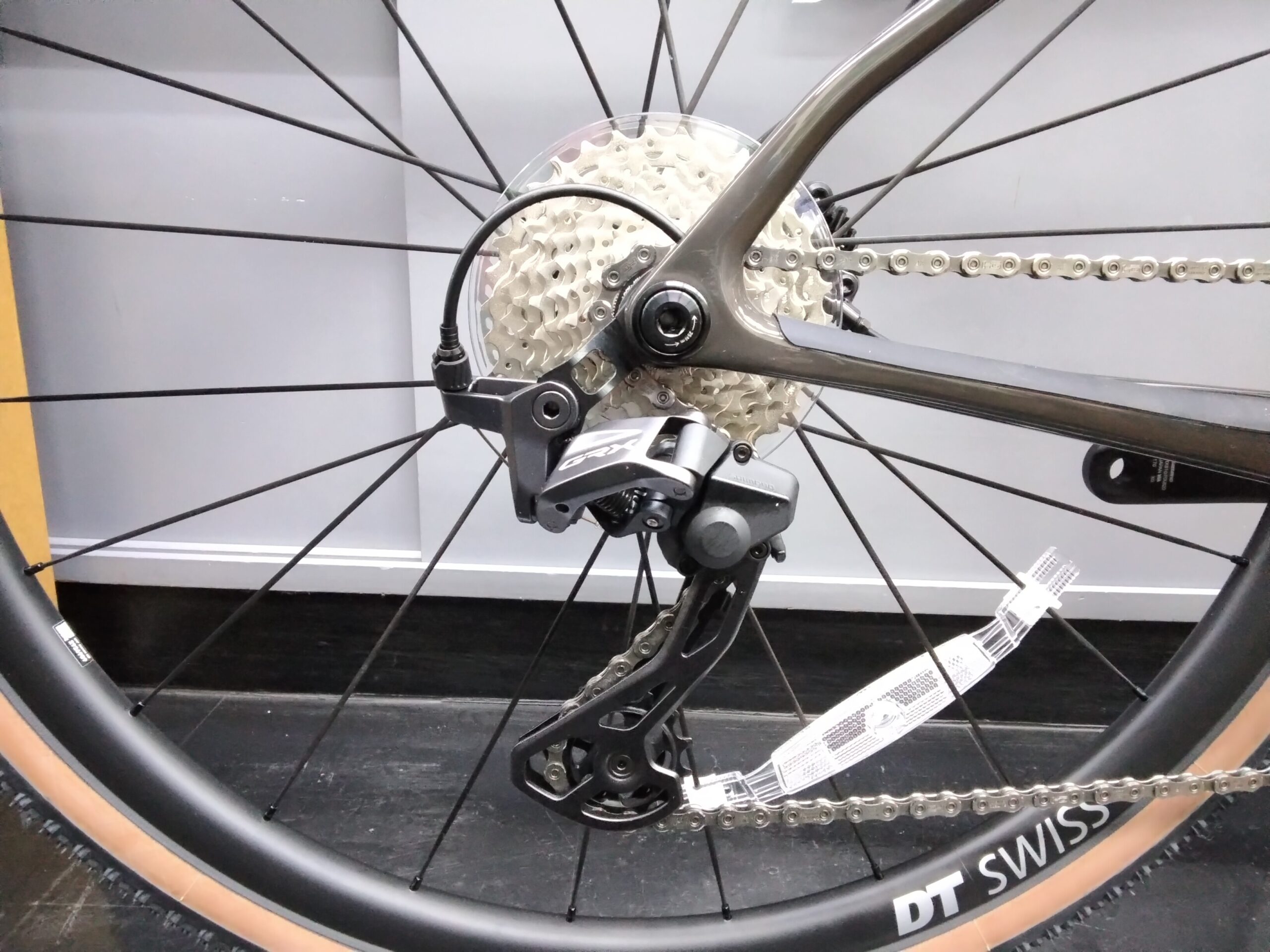 リヤドライブトレインはシマノGRX820と105 R7100カセットスプロケットの組み合わせ。